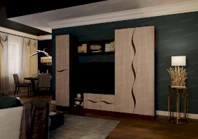 Гостиная «Анапа» — это неброская, изящная модель. Главным ее украшением служит отделка натуральных цветов с достоверной имитацией фактуры благородных сортов древесины. Плавно изогнутые линии на фасаде создают ощущение мягкости и возвышенности. В комплект входят два вместительных шкафа, открытые полочки, тумба. В центральной части гарнитура отведено место под телевизор.