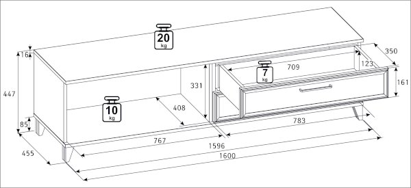 Максимальная нагрузка на столешницу: 20 кг