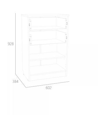 Тумба Оливия НМ 040.45 Х обеспечит аккуратное хранение обуви в прихожей. Для этого лучше всего подойдет нижнее отделение с полкой, скрытое за откидным фасадом. За счет встроенных газлифтов дверца открывается плавно. В верхней части тумба оборудована двумя выдвижными ящиками, в которых можно хранить средства по уходу за обувью, ключи.