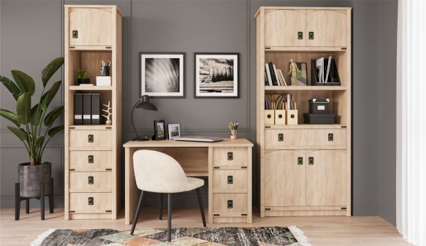 Письменный стол "Валенсия" выполнен в оригинальном морском стиле - декоративные накладки из МДФ, стилизованные металлические ручки MARINE бронзового цвета и декоративные элементы в тон создают имитацию корабельной мебели. Широкая столешница толщиной 22 мм, прочная и массивная как из натурального дерева, позволяет разместить все необходимые предметы под рукой. Главное преимущество стола - это безопасность использования: отсутствуют острые углы по краям, мягкая кромка 2мм. Выглядит эстетично со всех сторон - можно поставить в комнате под любым ракурсом.