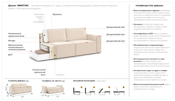 Диван Милтон (Империал) - за 60 776 руб. в Краснодаре. Купите на сайте mebelmarket-krasnodar.ru или по телефону 8(800)505-30-63 уже сегодня! Уточнить наличие, комплектацию, актуальную цену можно бесплатно у менеджера ежедневно. Закажите Диван Милтон (Империал) до конца акции! Доступна покупка в кредит, рассрочку. Доставим со склада или на заказ.