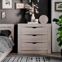 Элегантный комод «Леонардо» можно использовать как отдельно, так и в коллекции спального гарнитура. Удобная система хранения для одежды, пастельных принадлежностей или других хозяйственных аксессуаров состоит из трёх вместительных выдвижных ящиков на шариковых направляющих, которые обеспечивают легкую и бесшумную эксплуатацию модели.
