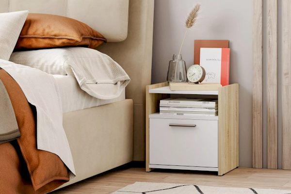 Прикроватная тумба Симпл, выполненная в скандинавском стиле, станет небольшим, но надежным дополнением интерьера. Верх тумбы можно применить в качестве журнального или ночного столика, и поставить на нем книги или стакан воды.