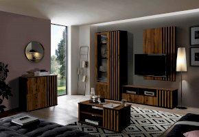 Торцы модуля - сверху, снизу и по периметру открытых полок покрыты черной пленкой и удачно гармонируют с реечным фасадом. Черные рамки подчеркивают границы тумбы. Таким образом достигается постоянный контраст, что выглядит очень эффектно!