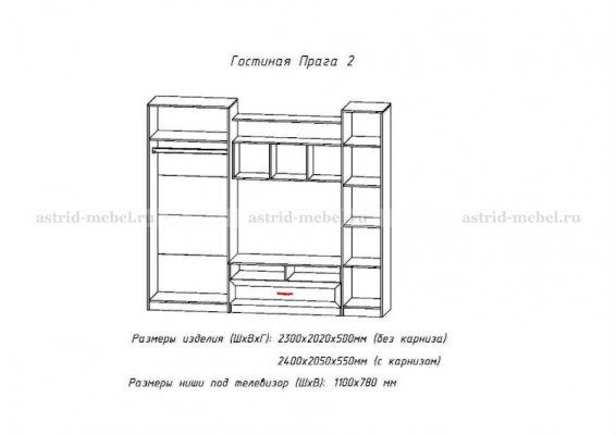 ТВ-секция Прага-3 + Двухстворчатый шкаф Прага-1 + Пенал Прага-1 Корпус: ЛДСП